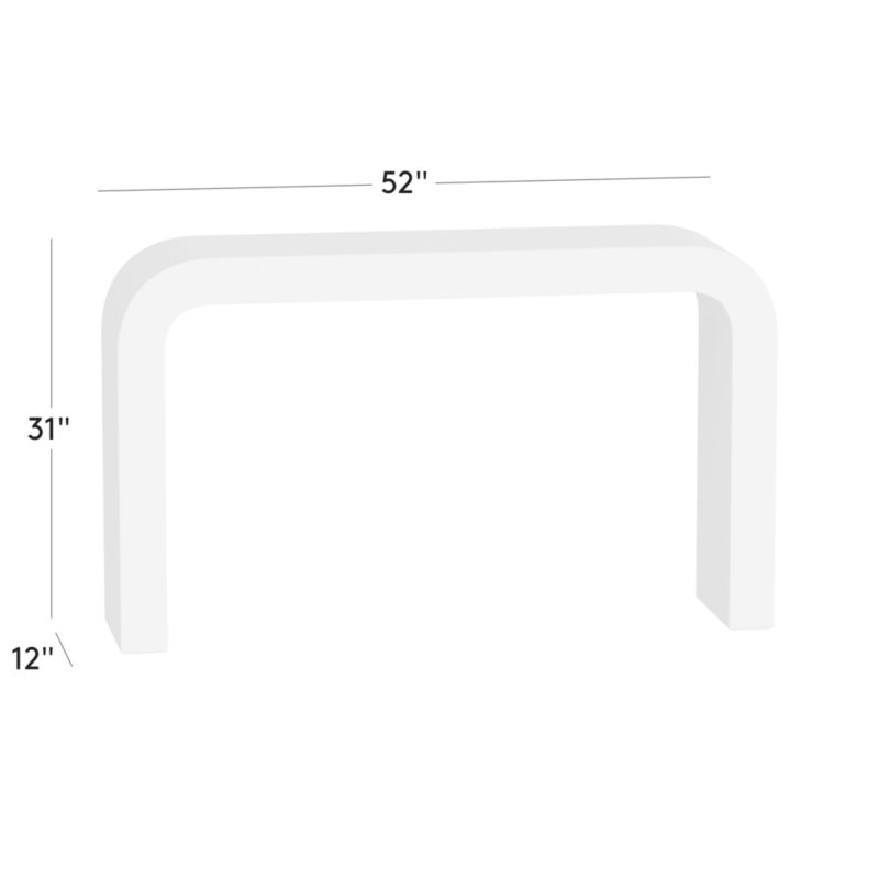 VUUE. "When up close, it is the natural texture that makes an impression." Inspired by modern silhouettes and unique materials of the 1970s, her design transforms a simple U-shape into a statement console table. The minimalist silhouette showcases the natural beauty of Turkish travertine, which is meticulously cut into ultra-thin slabs and expertly curved to envelop the table's wooden frame. This labor-intensive process highlights the organic textures and subtle color variations unique to the stone. No two pieces will be identical. CB2 exclusive.