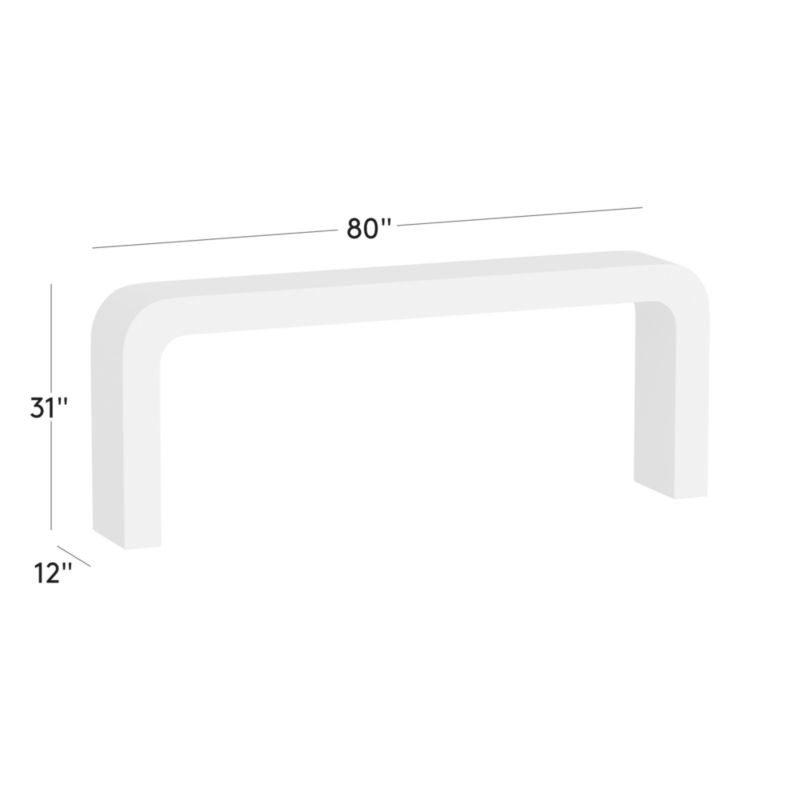 VUUE. "When up close, it is the natural texture that makes an impression." Inspired by modern silhouettes and unique materials of the 1970s, her design transforms a simple U-shape into a statement console table. The minimalist silhouette showcases the natural beauty of Turkish travertine, which is meticulously cut into ultra-thin slabs and expertly curved to envelop the table's wooden frame. This labor-intensive process highlights the organic textures and subtle color variations unique to the stone. No two pieces will be identical. CB2 exclusive.