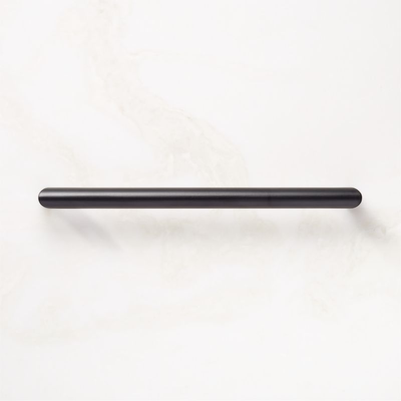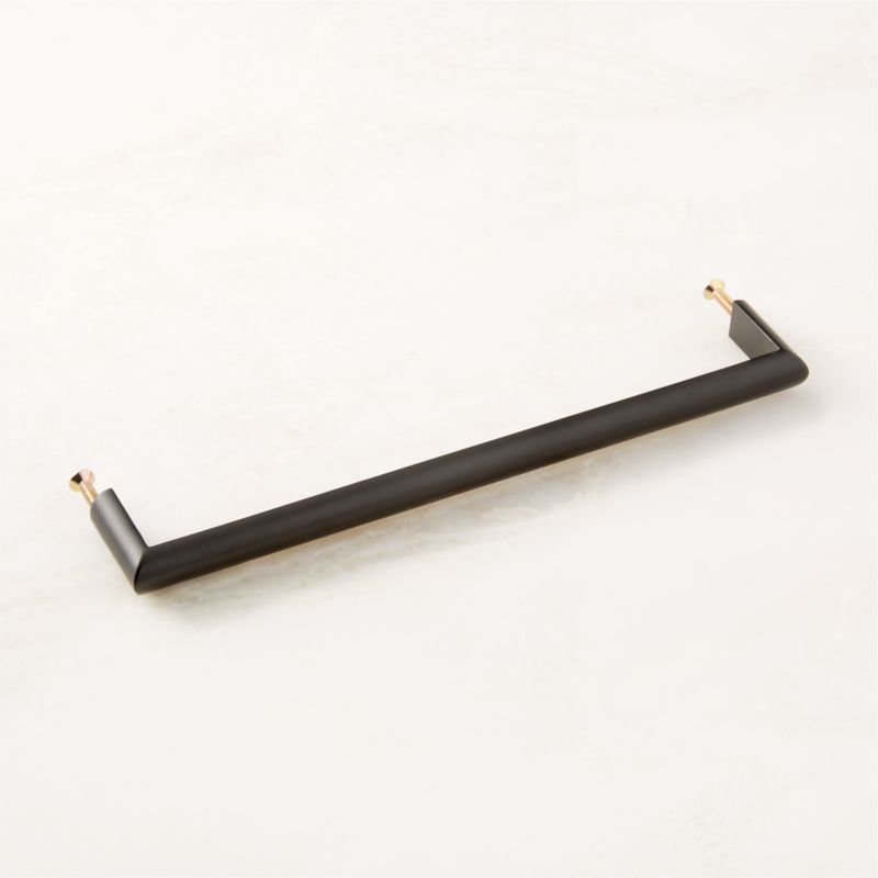 Crafted of solid brass, curved black cabinet handle by Barcelona-based Mermelada Estudio evokes a modern sensibility. Pair with the Curveaux knob for a cohesive look. CB2 exclusive.