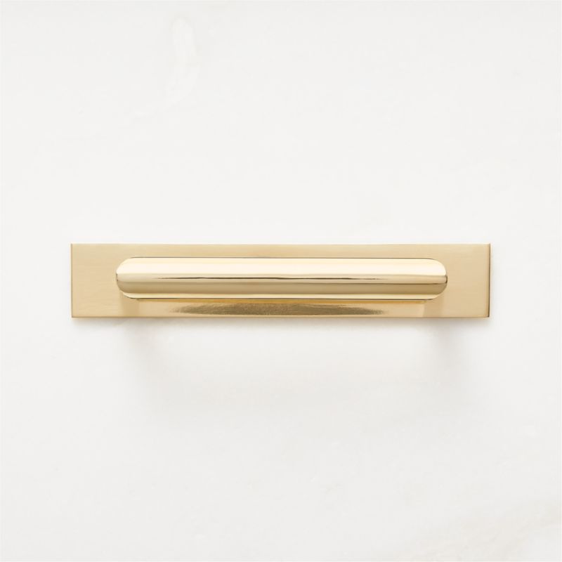 Crafted of solid brass, curved cabinet handle by Barcelona-based Mermelada Estudio evokes a modern sensibility. Brass is unlacquered, offering a living finish with the patina of a vintage find. Pair with the Curveaux knob for a cohesive look. CB2 exclusive.