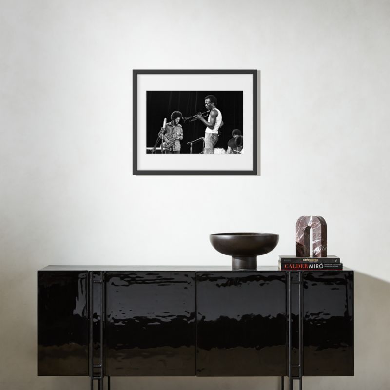 Jazz trumpeter and composer Miles Davis performs with Gary Bartz on saxophone and Jack DeJohnette on drums at the Tanglewood Music Festival in Lenox, Massachusetts. Part of CB2's collaboration with Sonic Editions, the image is printed and expertly mounted in a handcrafted wood frame.