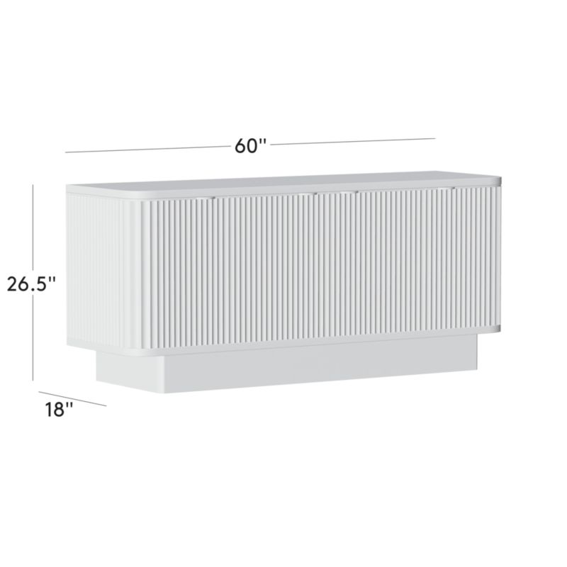 Designed by Studio ANANSI, the soft, fluid silhouette of the Davison media console makes a stunning statement. Fluted door fronts are complemented by polished unlacquered brass handles, offering a living finish that will develop the patina of a vintage find. Simply polish the brass to restore its original luster. CB2 exclusive.
