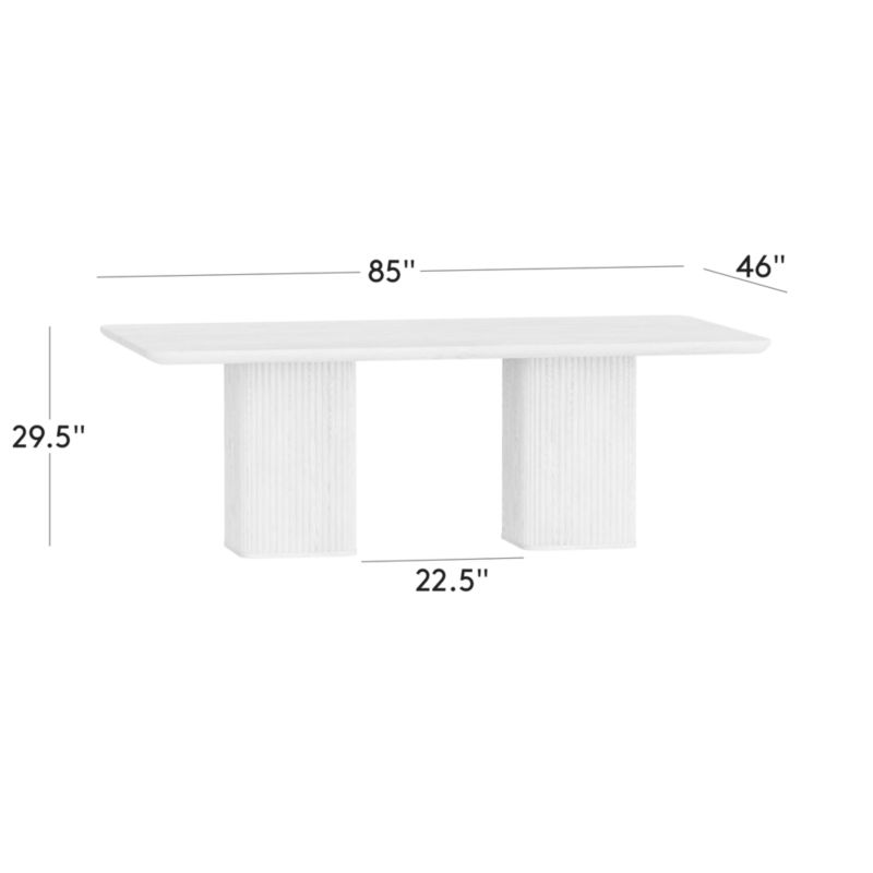 Studio ANANSI graces the dining room with clean lines. Softly rounded corners and two bold pedestal bases create a modern silhouette, while vertical fluting provides an architectural counterpoint that recalls elegant crown molding. Crafted of FSC®-certified wood finished with a warm, light brown stain, the expansive top showcases the wood's unique character, making each table naturally one of a kind. CB2 exclusive.