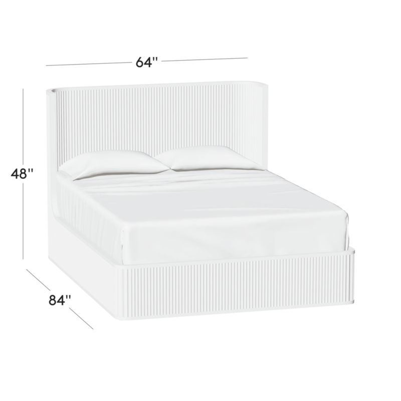 Studio ANANSI features carved fluting that wraps continuously around the frame—extending even within the headboard for a fully finished, thoughtful detail. The headboard curves gently around the corners of the pillow area, creating a sheltered, cocooned feel that invites rest. Finished in a warm, light brown stain, the Forest Stewardship Council ® (FSC)-certified pine showcases its natural character, celebrating the material's inherent subtle knots and grain variations. CB2 exclusive.