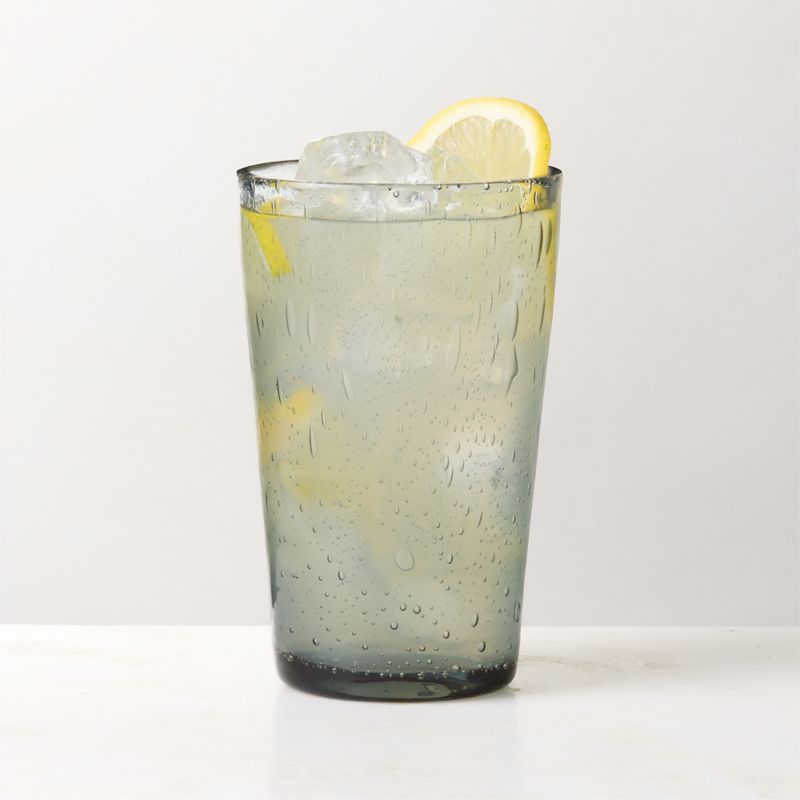 Moody smoked blue cooler glass is handblown by skilled artisans from recycled glass for a modern yet organic feel. CB2 exclusive.