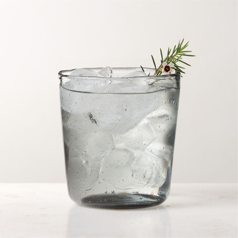Moody smoked blue double old-fashioned glass is handblown by skilled artisans from recycled glass for a modern yet organic feel. CB2 exclusive.