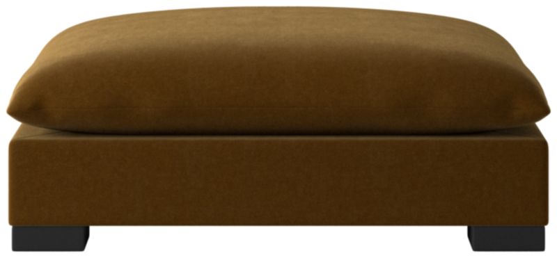Upholstered in a charcoal performance velvet, large-scale ottoman sits low to the ground with a pillow-like cushion for modern appeal. Combine with other Deseo sectional pieces for a configuration that suits your space. CB2 exclusive.