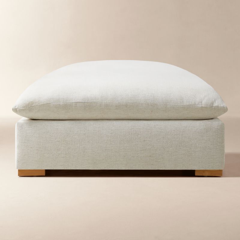 Upholstered in a snow white performance fabric, sectional sofa sits low to the ground with pillow-like detached cushions and wide arms for modern appeal. French seams add a tailored finish. Featuring a shallower depth and higher seat than our original Deseo design, its smaller proportions are classic and no less dramatic. CB2 exclusive.