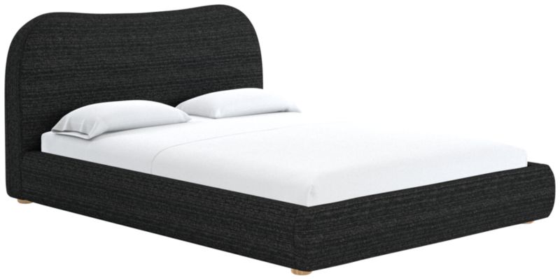 With its shapely curves and cloud-like presence, bed designed by Ross Cassidy is reminiscent of 1930s Italian design. The fabric wraps a frame supported by honey oak round legs. A subtle nod to traditional camel-back silhouettes with a dose of Ross' signature flair. CB2 exclusive.