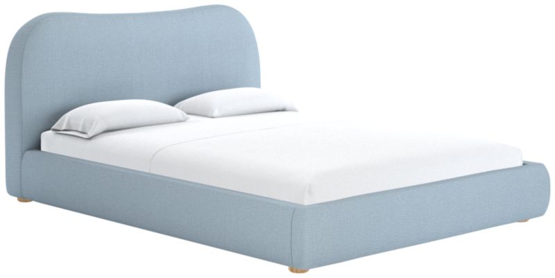 With its shapely curves and cloud-like presence, bed designed by Ross Cassidy is reminiscent of 1930s Italian design. The fabric wraps a frame supported by honey oak round legs. A subtle nod to traditional camel-back silhouettes with a dose of Ross' signature flair. CB2 exclusive.