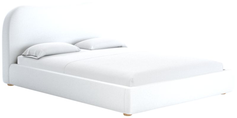 With its shapely curves and cloud-like presence, bed designed by Ross Cassidy is reminiscent of 1930s Italian design. The fabric wraps a frame supported by honey oak round legs. A subtle nod to traditional camel-back silhouettes with a dose of Ross' signature flair. CB2 exclusive.