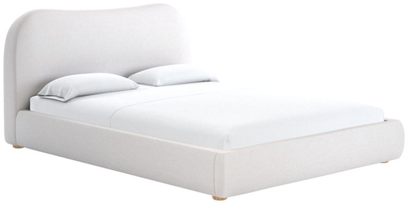 With its shapely curves and cloud-like presence, bed designed by Ross Cassidy is reminiscent of 1930s Italian design. The fabric wraps a frame supported by honey oak round legs. A subtle nod to traditional camel-back silhouettes with a dose of Ross' signature flair. CB2 exclusive.