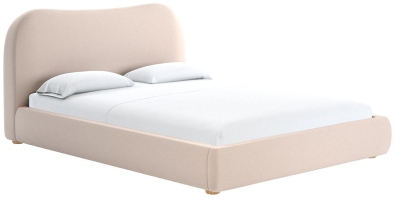 With its shapely curves and cloud-like presence, bed designed by Ross Cassidy is reminiscent of 1930s Italian design. The fabric wraps a frame supported by honey oak round legs. A subtle nod to traditional camel-back silhouettes with a dose of Ross' signature flair. CB2 exclusive.