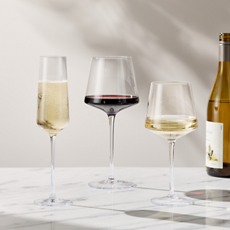 Raise your cup. Whether you're the type to partake in happy hour or just enjoy watching from the sidelines, let contemporary drinkware and bar accessories take center stage. Want to show off your newly-minted mixology skills? Invite the gang over for a casual hangout. Begin by stocking the bar cart's shelves with the basics. Think old-fashioned and cocktail glasses for friends who know what they like, and wine glasses for those who fancy themselves connoisseurs. Keep chaser and martini glasses nearby as well for the wild cards in your group. Want to keep it low-key yourself? Fill a pitcher with ice cold water that's infused with a cucumber or lemon—helping you maintain hydration between rounds. No matter your style, coasters preserve the like-new look of your tall table, while reusable straws coincide with the room's environmentally-friendly vibe.