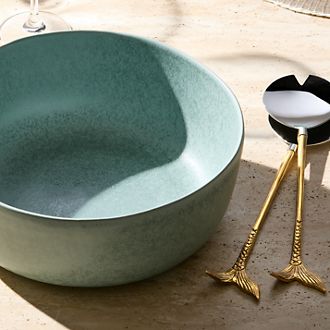 Go bold with modern kitchen storage and tools—making the leap from basic utensils to statement-making pieces. Classic black and stone tools bring a little drama to the kitchen counter. Look for stone or marble canisters, trivets and mixing bowls to ground your space. Elsewhere, stick to monochromatics by showing off your black French press and similarly-hued cutting board on open shelving like objets d'art. Then, infuse style by highlighting a few contrasting textures—think gold utensils, colanders or serveware. Is quaint and rustic more your thing? Try mason jar-inspired glassware and wooden cooking utensils for farmhouse charm.