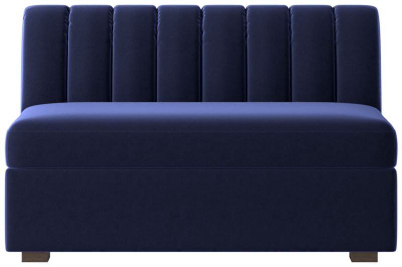 Defined by clean lines and thoughtful proportions, dining banquette bench by Mermelada Estudio brings sculptural presence to the dining space. Vertical channel tufting adds depth to the backrest, while the streamlined form is equally suited to wall placement or open floor plans. Solid red oak legs, certified sustainable by the Forest Stewardship Council® (FSC), are finished in a warm mid-tone stain to ground the piece with natural character. Pieces from the Duncan collection are available individually or in multiples to create a custom banquette configuration. CB2 exclusive.