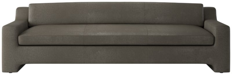 Hand-assembled in North Carolina, leather sofa by Melbourne-based design studio VUUE makes a bold statement. Simple frame is benchmade of kiln-dried hardwood certified sustainable by the Forest Stewardship Council ® (FSC). A long, plush bench cushion makes a striking design moment paired with gently sloped arms. CB2 exclusive.