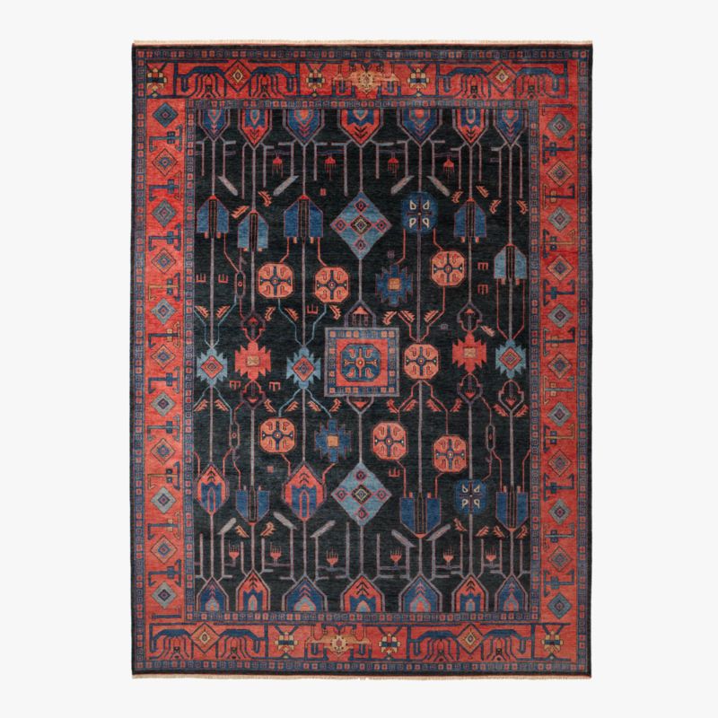 View CartEros Hand-Knotted Red and Blue Wool Area Rug 13'x18'
