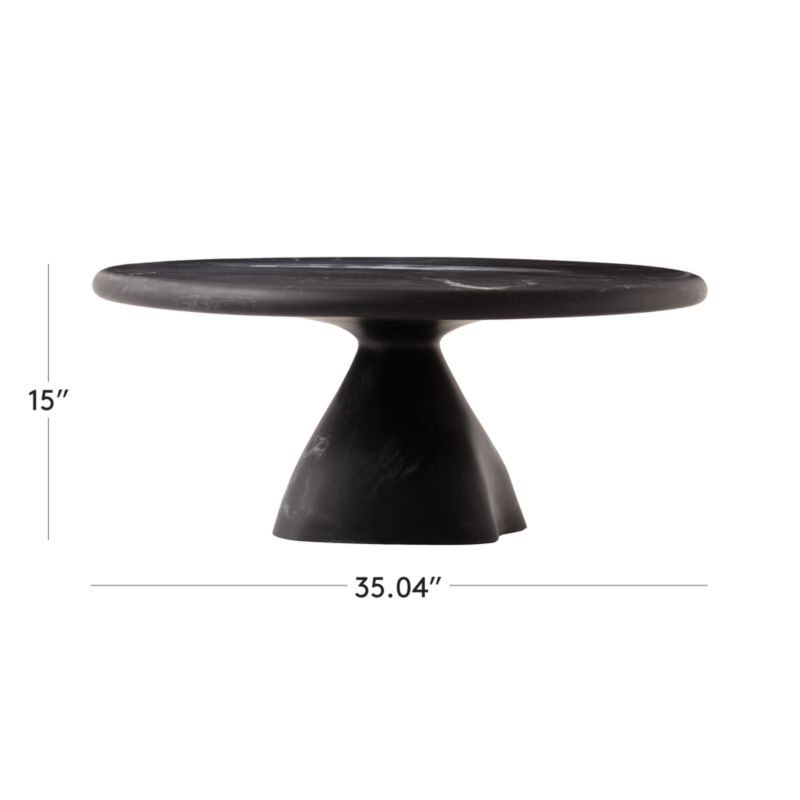 Sculptural coffee table from Brooklyn-based designer Caleb Zipperer updates the classic pedestal table with striking materiality and a modern biomorphic base. The organic silhouette is cast of matte black resin with swirls that resemble marble veining. CB2 exclusive.
