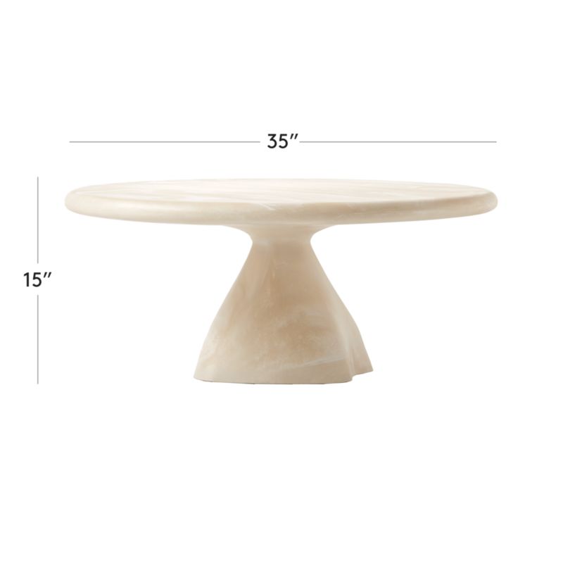 Sculptural coffee table from Brooklyn-based designer Caleb Zipperer updates the classic pedestal table with striking materiality and a modern biomorphic base. The organic silhouette is cast of matte resin with swirls of cream and ivory to resemble a richly veined marble. CB2 exclusive.