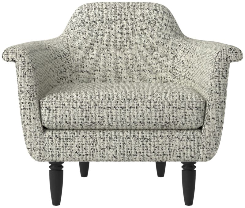A modern take on the formal button-tufted chair, the Etre Lotus chair takes it easy with subtle curves and angled arms. The deep-seated silhouette is supported by a kiln-dried hardwood frame and turned white oak legs. CB2 exclusive.