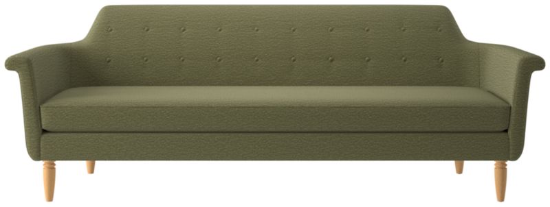 A modern take on the formal button-tufted sofa, the Etre sofa takes it easy with subtle curves and angled arms. The deep-seated silhouette is supported by turned white oak legs. CB2 exclusive.