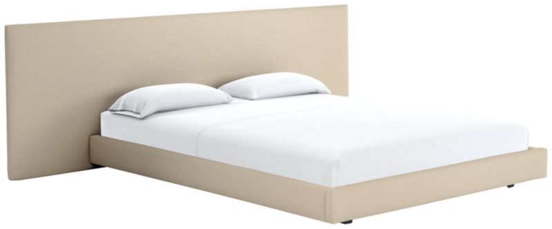 A study in proportion and restraint, bed pairs a clean box silhouette with exceptional materials. Solid maple wood frame supports a slim cushioned headboard scaled for comfort and extended wide to accommodate nightstands. The tailored design features a fully upholstered back, allowing it to float within a room. CB2 exclusive.