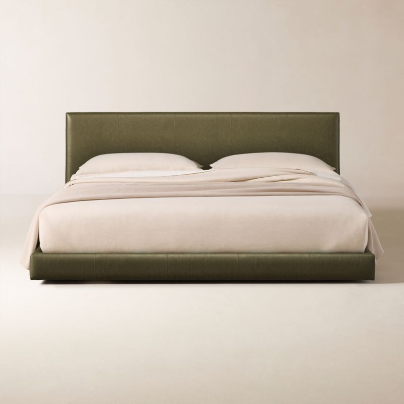 A study in proportion and restraint, bed pairs a clean box silhouette with exceptional materials. Solid maple wood frame supports a slim cushioned headboard scaled for comfort while maintaining a streamlined profile. The tailored design features a fully upholstered back, allowing it to float within a room. Moore & Giles aniline-dyed full grain leather wraps the frame for a luxurious yet refined finish. Each hand-selected hide is tumbled to achieve a subtle pebble grain and undergoes a soft wax treatment to create its soft, supple feel. Over time, the leather will burnish and develop a rich patina with unique markings and variations that underscore its authenticity. CB2 exclusive.
