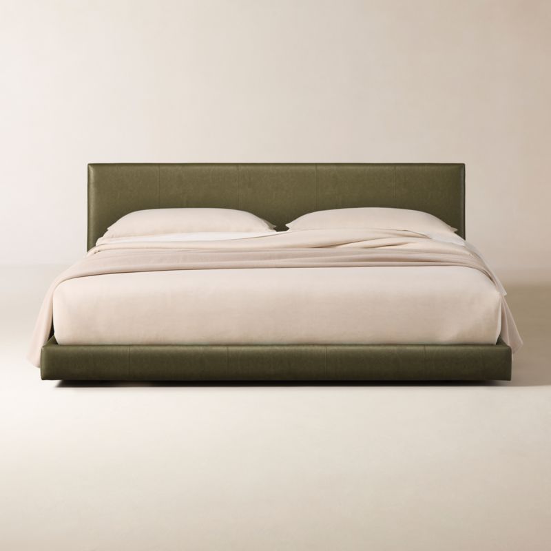 A study in proportion and restraint, bed pairs a clean box silhouette with exceptional materials. Solid maple wood frame supports a slim cushioned headboard scaled for comfort while maintaining a streamlined profile. The tailored design features a fully upholstered back, allowing it to float within a room. Moore & Giles aniline-dyed full grain leather wraps the frame for a luxurious yet refined finish. Each hand-selected hide is tumbled to achieve a subtle pebble grain and undergoes a soft wax treatment to create its soft, supple feel. Over time, the leather will burnish and develop a rich patina with unique markings and variations that underscore its authenticity. CB2 exclusive.