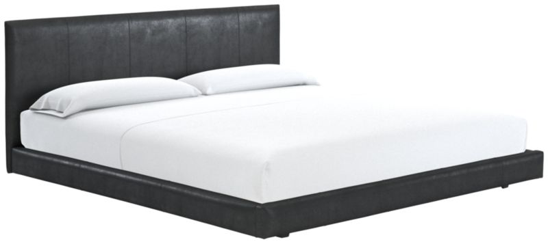 A study in proportion and restraint, bed pairs a clean box silhouette with exceptional materials. Solid maple wood frame supports a slim cushioned headboard scaled for comfort while maintaining a streamlined profile. The tailored design features a fully upholstered back, allowing it to float within a room. Moore & Giles aniline-dyed full grain leather wraps the frame for a luxurious yet refined finish. Each hand-selected hide is tumbled to achieve a subtle pebble grain and undergoes a soft wax treatment to create its soft, supple feel. Over time, the leather will burnish and develop a rich patina with unique markings and variations that underscore its authenticity. CB2 exclusive.