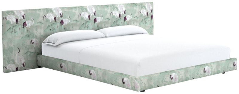 A study in proportion and restraint, bed pairs a clean box silhouette with exceptional materials. Solid maple wood frame supports a slim cushioned headboard scaled for comfort and extended wide to accommodate nightstands. The tailored design features a fully upholstered back, allowing it to float within a room. CB2 exclusive.