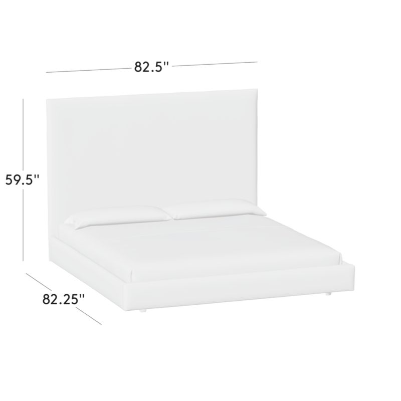 A study in proportion and restraint, bed pairs a clean box silhouette with exceptional materials. Solid maple wood frame supports a slim cushioned headboard scaled for comfort and dramatic height. The tailored design features a fully upholstered back, allowing it to float within a room. CB2 exclusive.