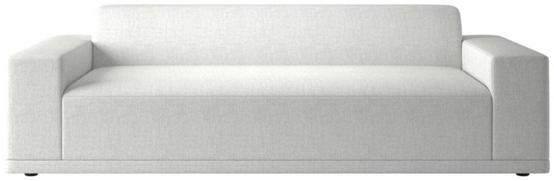Deep, generously proportioned sofa designed by Melbourne-based VUUE is sophisticated in a snow white performance fabric. The oversized profile is perfect for lounging with family and friends without sacrificing style. Performance fabric withstands spills and other stressors, yet retains the lushness of a high-end textile. CB2 exclusive.