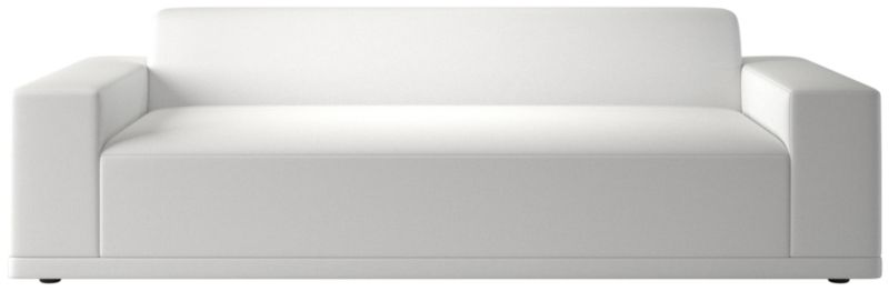 Deep, generously proportioned sofa designed by Melbourne-based VUUE is sophisticated in a snow white performance fabric. The oversized profile is perfect for lounging with family and friends without sacrificing style. Performance fabric withstands spills and other stressors, yet retains the lushness of a high-end textile. CB2 exclusive.