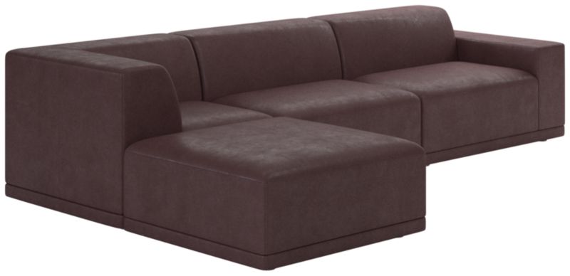 Hand-assembled in North Carolina, sectional sofa by Melbourne-based design studio VUUE is sophisticated in rich leather upholstery. Neat seat and back cushions sit upright, making it our go-to spot for lounging. Leather retains its inherent texture and graining, adding character to any piece. Each hide is unique and will age and soften over time. Customize the sectional layout to suit your individual space. CB2 exclusive.