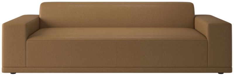 Deep, generously proportioned sofa designed by VUUE is sophisticated in Moore & Giles full-grain leather upholstery. The oversized profile is perfect for lounging with family and friends without sacrificing style. Hand-selected for its inherent markings and characteristics, the leather upholstery is finished with layers of wax for a naturally worn-in aesthetic. CB2 exclusive.