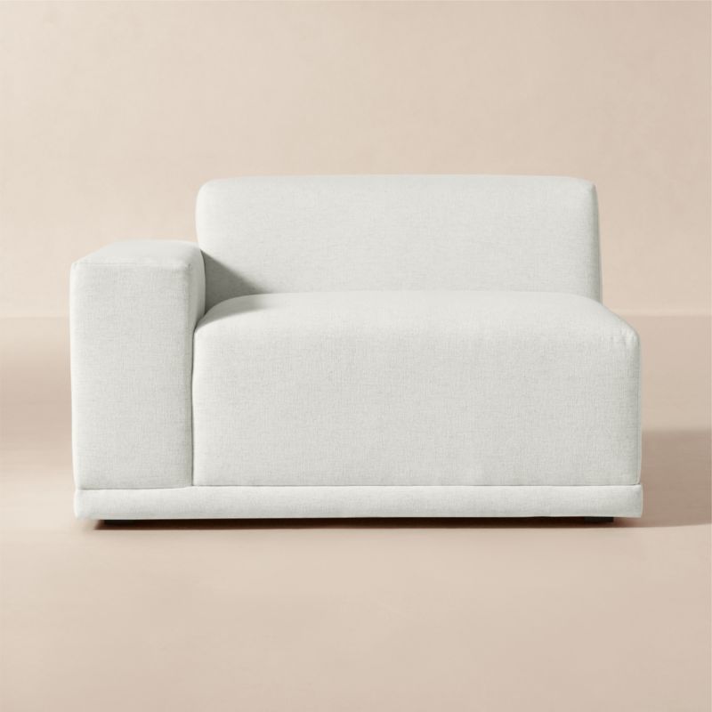 Hand-assembled in North Carolina, left-arm chair by Melbourne-based design studio VUUE is sophisticated in snow white. Upholstered in a soft linen-blend performance fabric that can withstand spills and other stressors while retaining the lushness of a high-end textile. Float the chair on its own or add coordinating Faible pieces to create a spacious sectional sofa. CB2 exclusive.
