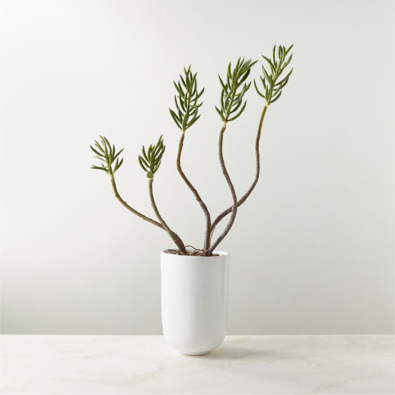 Presented in a smooth white pot, faux succulent plant mimics the lush green hue of the real thing. Found in subtropical environments, succulents have a unique sculptural silhouette—perfect for an organic accent to a desk or credenza. CB2 exclusive.