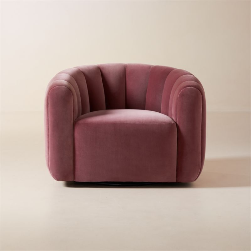 Fitz Channeled Rose Velvet Swivel Chair27.5height38.5width32.5depthMeasurements are in inches.