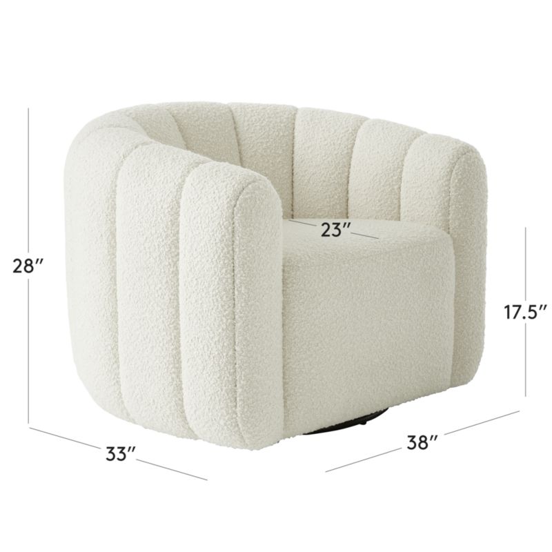Fitz Channeled White Boucle Swivel Chair28height38width33depthMeasurements are in inches.