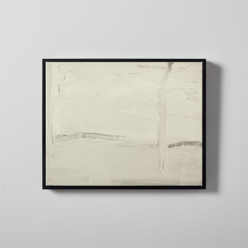 In Eli Sonder's "Forest II," a foggy sunrise hovers behind a sparse forest landscape. Serene yet mysterious, the scene evokes a sense of calm with its soft color palette. CB2 exclusive.