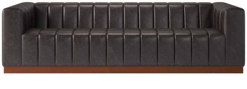 Forte 101" Extra-Large Channeled Leather Sofa with Walnut Base Bello Black26.5height101width38.75depthMeasurements are in inches.
