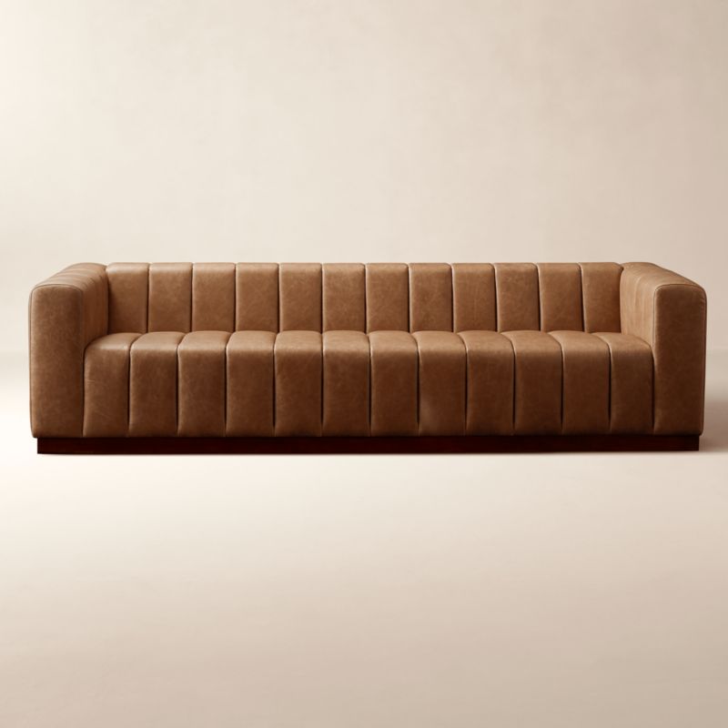 Forte 101" Extra-Large Channeled Saddle Leather Sofa with Walnut Base