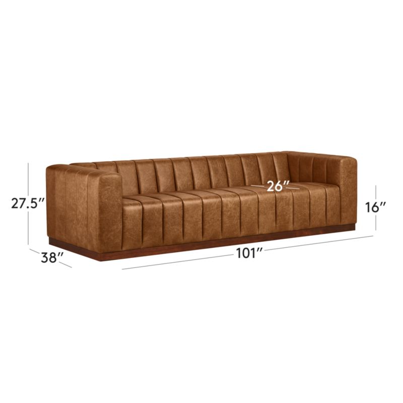 Forte 101" Extra-Large Channeled Saddle Leather Sofa with Walnut Base26.5height101width38.75depthMeasurements are in inches.