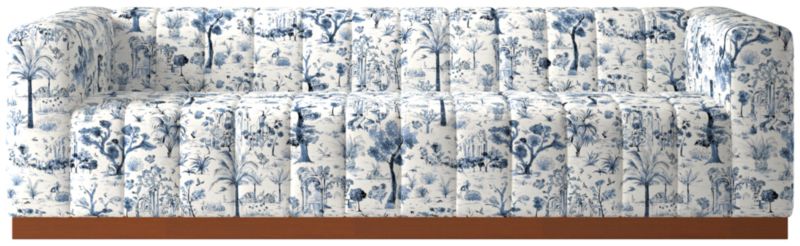 Forte 101" Landscape Blue Sofa with Walnut Base
