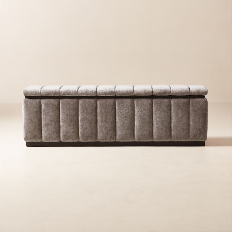Designed by Mermelada Estudio, cushy channels of plush upholstery line the length of this finely tailored bed. The chenille-like fabric is highly resilient, easy to clean and stain resistant. Plinth oak wood base with a black finish keeps a minimal profile. A true statement piece. Learn about Mermelada Estudio on our blog. CB2 exclusive.