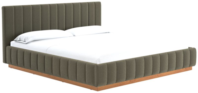 Designed by Mermelada Estudio, cushy channels of lush upholstery line the length of this finely tailored bed. Plinth oak wood base keeps a minimal profile finished in a subtle whitewash. A true statement piece. Learn about Mermelada Estudio on our blog. CB2 exclusive.