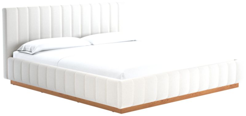 Designed by Mermelada Estudio, cushy channels of lush upholstery line the length of this finely tailored bed. Plinth oak wood base keeps a minimal profile finished in a subtle whitewash. A true statement piece. Learn about Mermelada Estudio on our blog. CB2 exclusive.