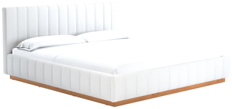 Designed by Mermelada Estudio, cushy channels of lush upholstery line the length of this finely tailored bed. Plinth oak wood base keeps a minimal profile finished in a subtle whitewash. A true statement piece. Learn about Mermelada Estudio on our blog. CB2 exclusive.