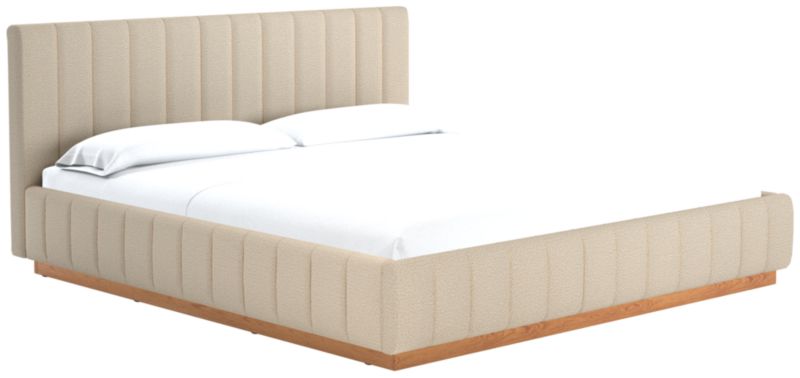 Designed by Mermelada Estudio, cushy channels of lush upholstery line the length of this finely tailored bed. Plinth oak wood base keeps a minimal profile finished in a subtle whitewash. A true statement piece. Learn about Mermelada Estudio on our blog. CB2 exclusive.